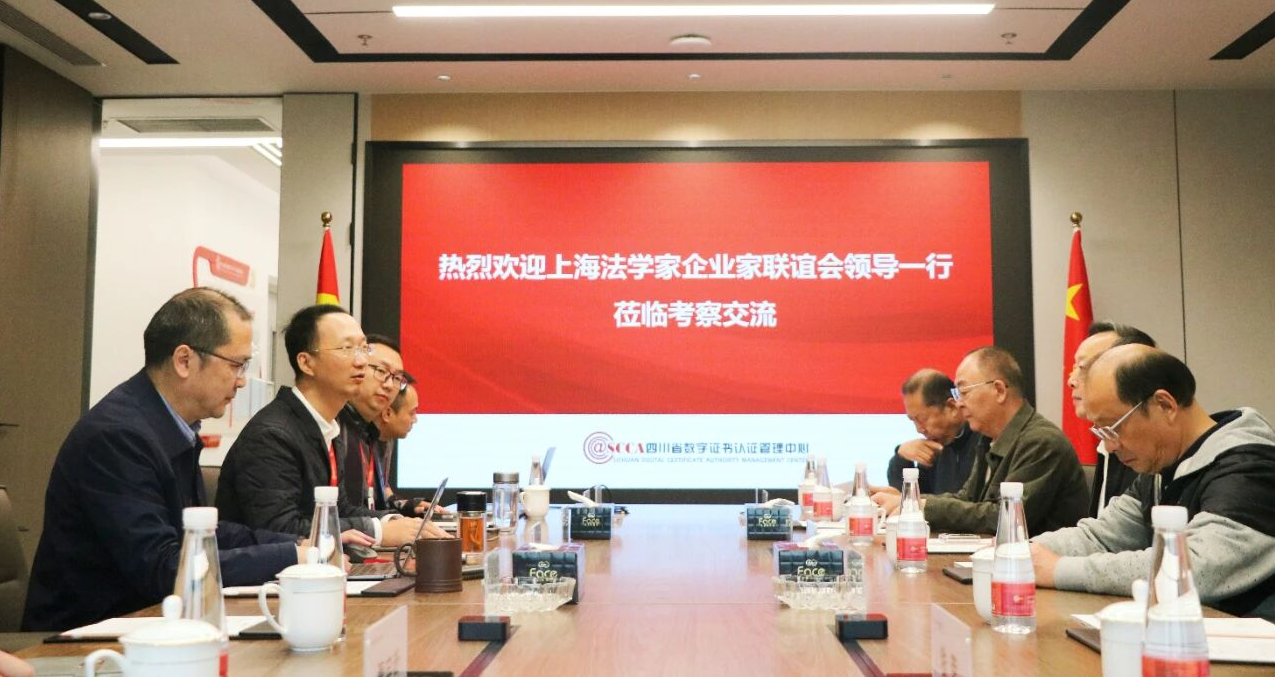 2025年10月29日上午,上海法学家企业家联谊会(下称“联谊会”)代表团一行到访四川CA,就电子认证服务在司法领域应用开展专题...